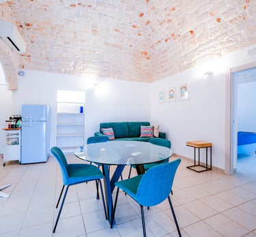 Discover our apartment in the heart of Apulia, specifically in Ceglie Messapica, one of the most charming villages in the Itria Valley, where authentic elegance meets comfort and tranquility. It can accommodate up to four people.